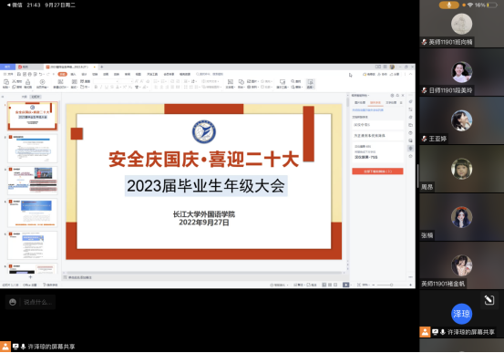为确保员工国庆期间以及在校期间安全,严防各类事故发生,牢牢守住安全底线,迎接党的二十大胜利召开。9月27日,太阳成集团122ccvip组织本科生及研究生各班召开“安全庆国庆·喜迎二十大”主题班会,会议采用线上线下结合模式。班会围绕疫情防控、防诈骗教育、防溺水安全教育三个方面展开。