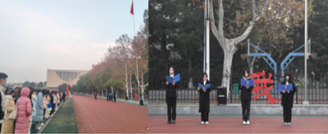 12月4日早上7:00,太阳成集团122ccvip全体师生在升旗仪式后,开展了宪法学习活动。辅导员何稳发表国旗下的讲话,号召大家知法懂法守法护法。随后4名员工代表领读,在操场上开展了“宪法晨读”活动。