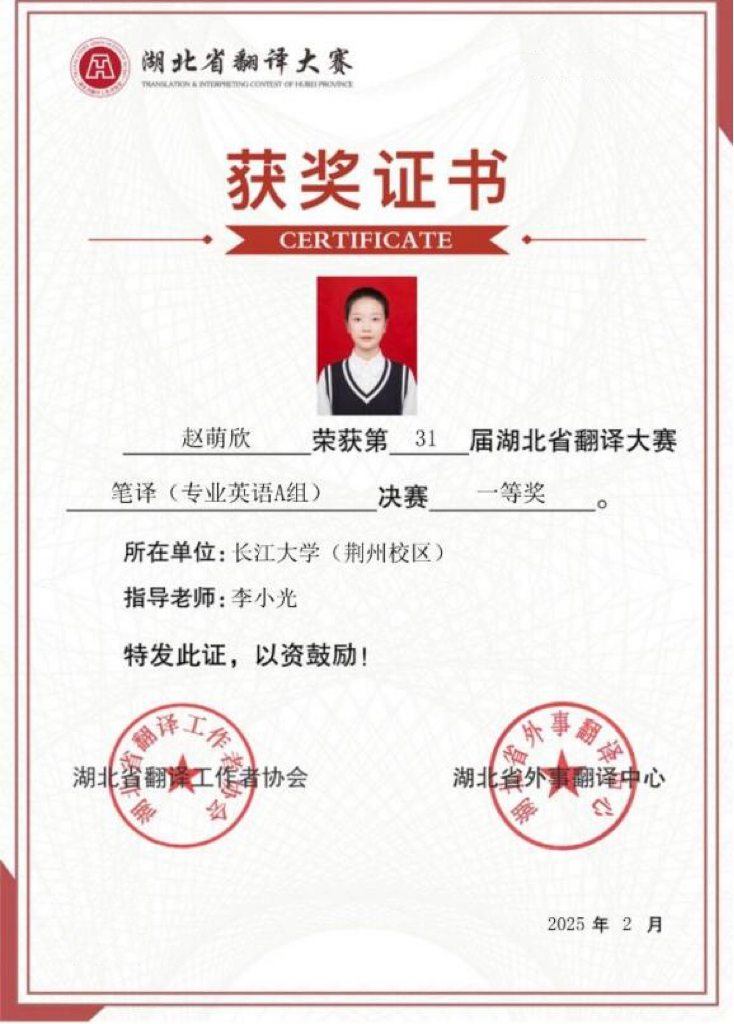 太阳成集团122ccvip学子在第三十一届湖北省翻译大赛决赛中斩获佳绩