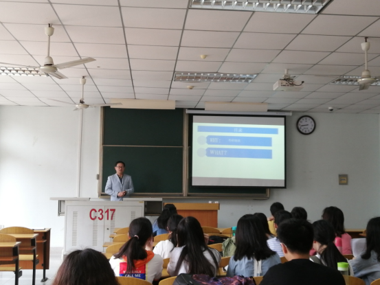 接下来,谢经理解读和宣传了本院公司产品与招生的情况。今年公司新增2个硕士点,翻译硕士(笔译)和教育硕士(学科英语),预计2020年开始招生。学科点团队雄厚,现有博士生导师1人,硕士生导师17人(含楚天学子1人),教授6人,博士学位教师13人,另聘有行业实践导师10余人。5月28日至29日,公司将举行研究生招生夏令营活动,欢迎本院同学积极报考本院。