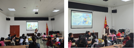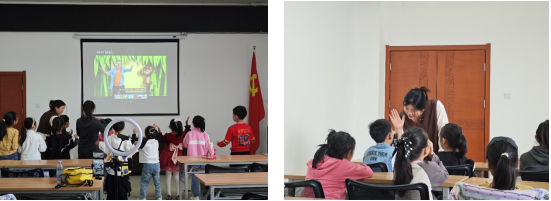 (通讯员 李子钰)11月3日下午,“绘声绘色”英语绘本故事会活动在荆州市图书馆一楼多媒体教室如期开展,并通过抖音平台“荆小图”账号实现全程线上直播。这是公司“阳光号列车”研究生志愿队参与的第64期“绘声绘色”活动。公司2023级学科英语专业研究生贺静同学,2024级学科英语专业研究生李子钰和张子晗同学,以及2024级英语笔译专业研究生李璇分别作为主讲师和助教参与此次活动。