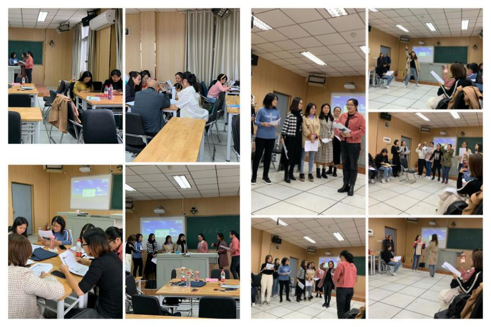 鲁志荣老师和陈凯华老师为老师们带来了精彩的戏剧入课堂课型实操,大家欢聚一堂,在两位老师的指导下分小组进行戏剧演练