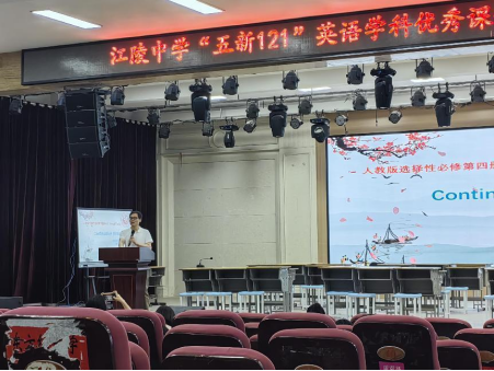 (通讯员 马欣悦)5月24日,江陵中学在学术报告厅成功举办了“五新121”优秀课例展示活动之英语组专场。本次活动由周蕾老师主讲,教材为人教版选择性必修第四册,主题为《Unit 1 Science Fiction--Continuation Writing》,时长40分钟。江陵中学英语教研组长陈应彬主持了此次活动,公司英语(师范)专业2021级和2023级的五名员工代表在马天雨老师的带领下参与观摩交流。