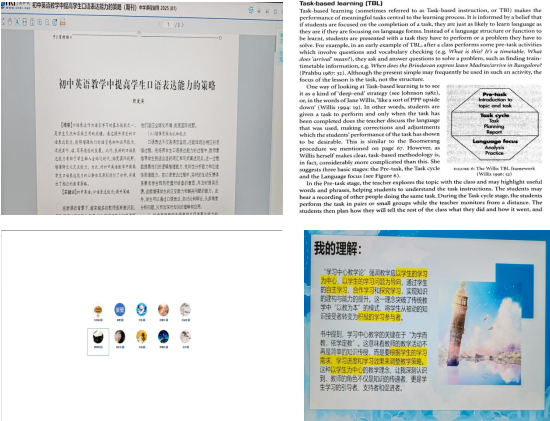 在22级分享会中,主要有8位同学进行分享,或小组或个人,以PPT,思维导图的多种形式,从杜蓉、肖贻之,罗彤的初中英语项目式分享学习的理论到实践;从陈欣然,蔡晓宇的课标解读理论到中学英语课堂具体问题;从王琪的对于科学的应试教育和本质的素质教育协同育人理念;从张叶的学习优秀教师课例到语篇为基分析的教学设计;从龚荣的突破有“语言”无“文化”的教学窘境,22级的同学们精心设计呈现她们于寒假间的阅读所得,为听众展现了她们对于建设自身教育方面的激情与能量。王娟老师也对此进行了一对一的点评,点明在新的时代,师范生在预备阶段对于新理论在实践中的掌握与理解,对于之后的实践阶段是十分有必要的,新时代,新理论,配对着我们不断掌握新思想的新教师。